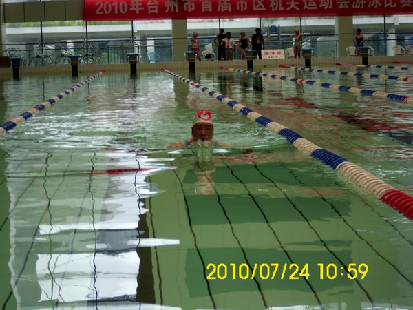 2010年7月24日,台州市首届市区机关运动会游泳比赛在市体育中心游泳馆举行,台州公安代表队组队参加,并在多个项目上斩获好成绩。台州公安代表队获得40岁以下男子4×米混合泳的冠军;黄岩分局章昕和椒江分局张凌辉分获40岁以下男子组100米自由泳第一和第三名;黄岩分局章昕和侯丹阳分获40岁以下男子组200米蛙泳第一、五名和40岁以下男子组50米蛙泳第一、四名;椒江分局王良胜获得40岁以上男子组100米自由泳第七名;黄岩分局王彪获得40岁以上男子组200米蛙泳第七名。黄岩分局周晨、林萍和市局王琼分获40岁以上女子组50米蛙泳第一、二、四名;黄岩分局林萍、周晨和市局王琼还分获40岁以上女子组100米蛙泳第一、二、八名;市局符冰清获得40岁以下女子组50米自由泳第一名;黄岩分局张自芳获得了40岁以下女子组100米蛙泳第二名和40岁以下女子组50米蛙泳第六名。