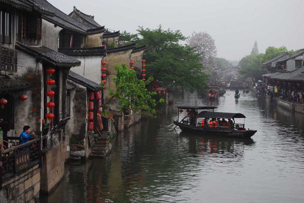 来到嘉兴市嘉善县西塘时,正赶上下雨天,雨不大,感受到烟雨江南的那种水乡韵味。濛濛细雨中的西塘,白墙黛瓦,舟影波光,恰如一幅淡彩的宣纸画。
