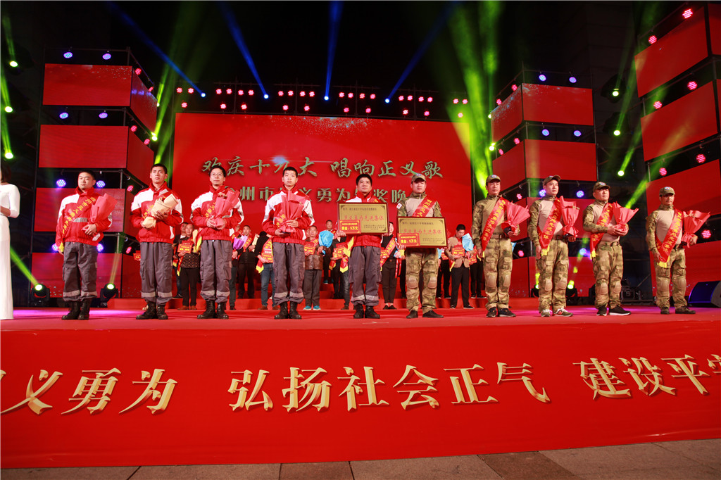 11月3日晚,台州市民广场上灯光璀璨,载歌载舞,由市公安局、市见义勇为工作办公室主办的“欢庆十九大、唱响正义歌——2017台州市见义勇为颁奖晚会”在这里热烈举行。