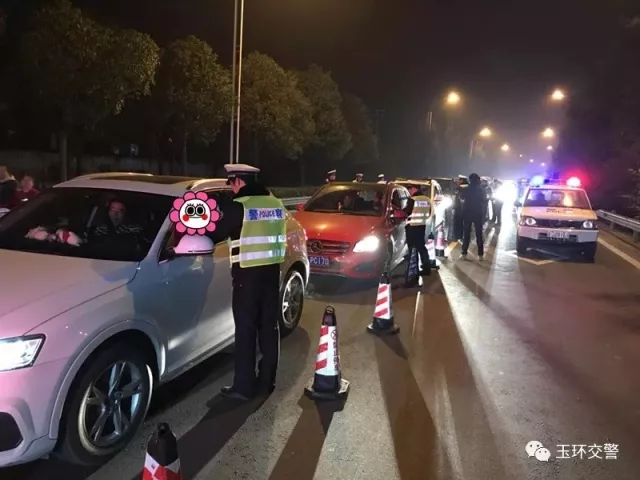 当晚,玉环辖区共派出100余名警力,设置6个卡点,查获9名“酒司机”。