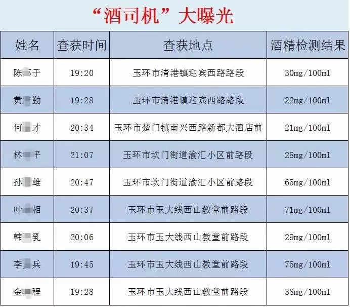以下曝光当晚查获的9名“酒司机”名单